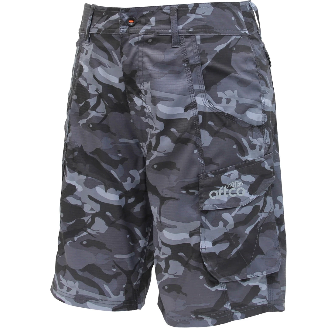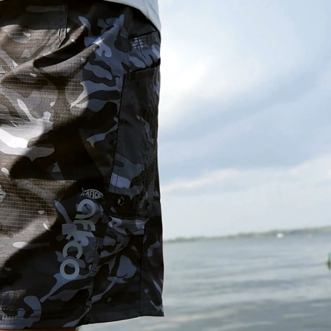Meet the next generation of AFTCO shorts, featuring lightweight ripstop camo. The Camouflage Tactical fishing short features an exclusive AFTCO fish silhouette hidden within a blue camo, green camo, and grey camo print. As with our Stealth shorts, the Tactical men’s camo fishing shorts sport AFGUARD stain resistance, AFLEX 2-way stretch and AFBLOCK sun protection. Tactical Fishing Short features AFTCO’s Active Fit for a true-to-size fit for optimal on the water performance.