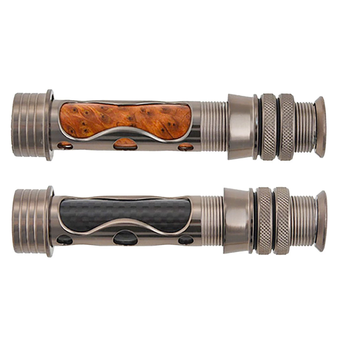 - Available with anodized aluminum, woven graphite or burled wood inserts