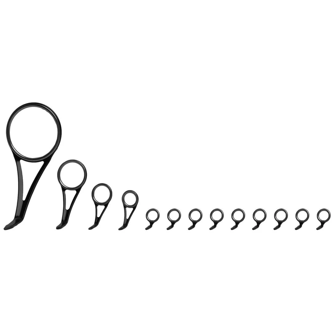 Combining affordability and value with the utmost strength and durability, the SSR Guides by CRB are engineered with stainless steel frames and a double swaged stainless steel insert rings for virtually impact proof performance. The minimal design of the SSR Guides creates a lighter overall guide train with thinner rings that produce a larger opening to easily pass leader knots and swivels without damaging fishing line, braid, or the SSR ring itself. Plus, two sleek frame finish options: polished, or black frames with polished rings.