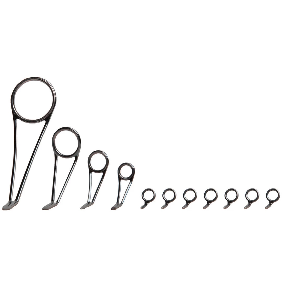 Combining affordability and value with the utmost strength and durability, the SSR Guides by CRB are engineered with stainless steel frames and a double swaged stainless steel insert rings for virtually impact proof performance. The minimal design of the SSR Guides creates a lighter overall guide train with thinner rings that produce a larger opening to easily pass leader knots and swivels without damaging fishing line, braid, or the SSR ring itself. Plus, two sleek frame finish options: polished, or black frames with polished rings.