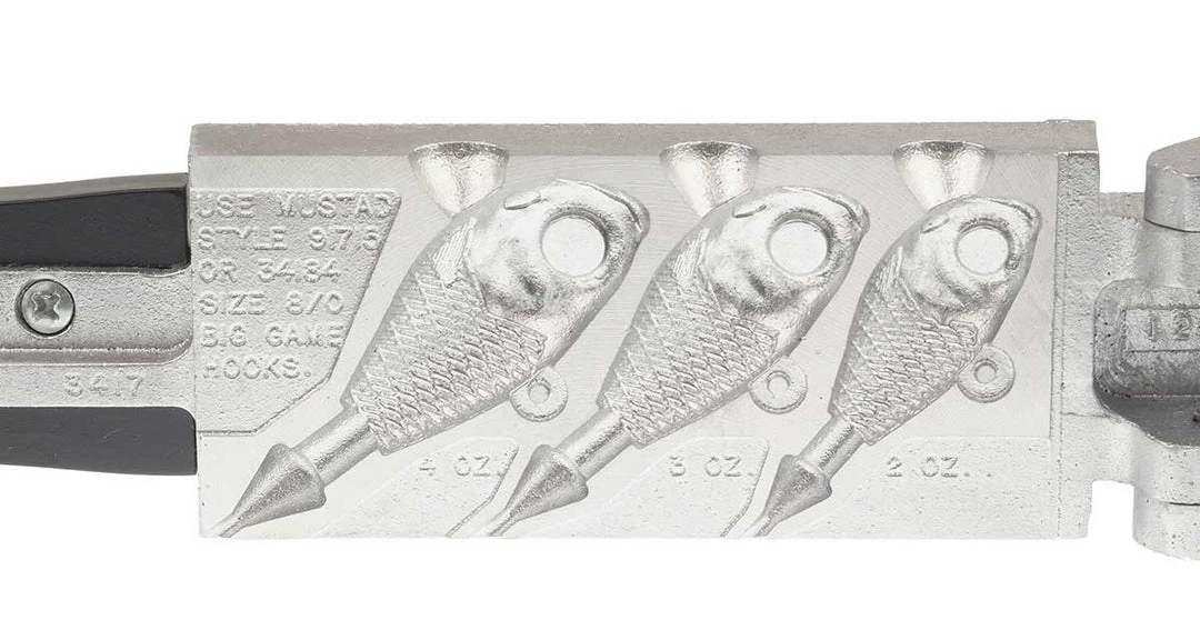 DO-IT mold model SHR-3-L features 3 cavities in sizes 2, 3, 4. See table for hook size requirements.