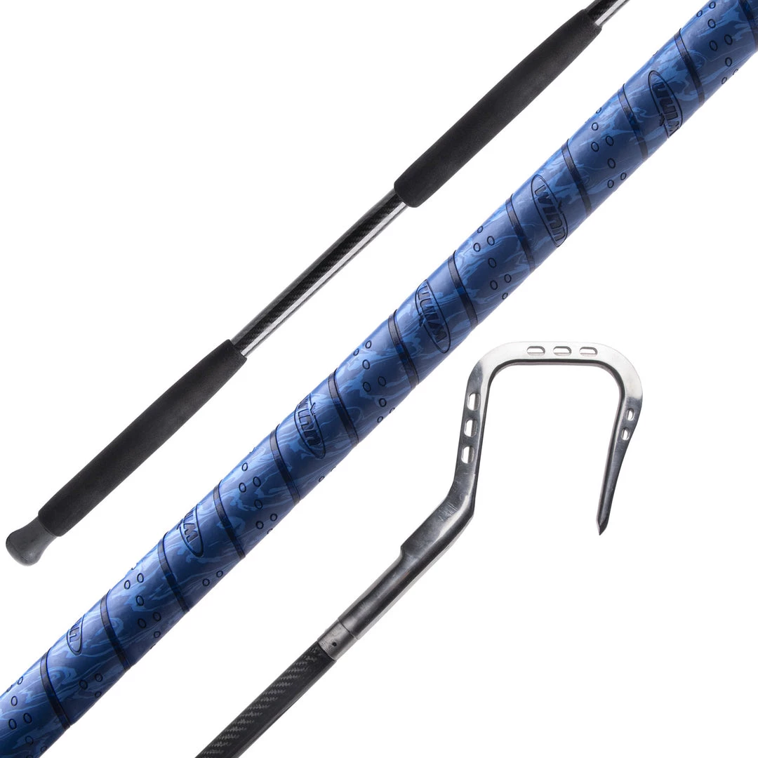The MHX gaff blanks feature a carbon fiber construction and woven twill for additional impact strength. Each blank includes a stepped mounting surface to allow the matching hooks to mate flush over the blank. Additionally, these blanks are reinforced, allowing you to drill and fasten the hook to the blank with a pin (not included) for extra strength when hauling in those monster tuna and other pelagic species.