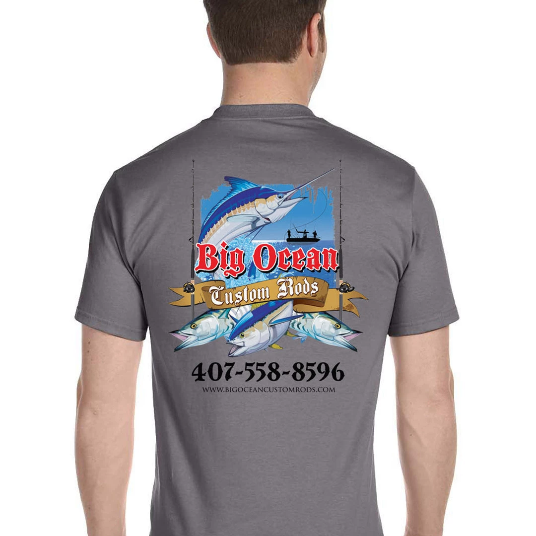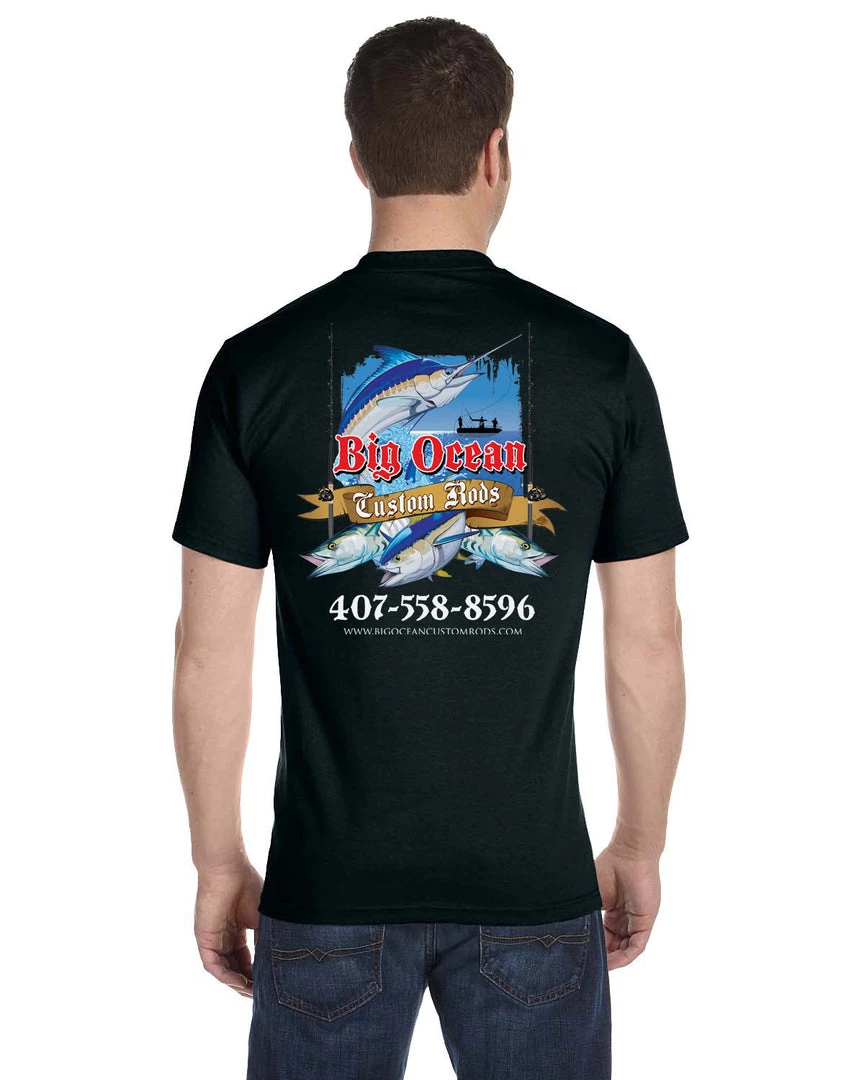 Note: Front graphics are printed over the left breast. The main artwork prints on the back side.