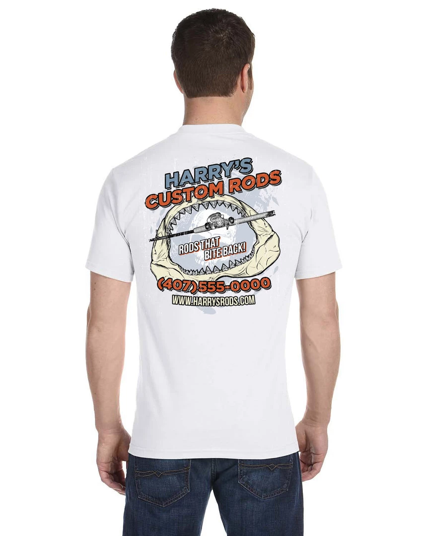 To order, enter your text for each line, or leave a line blank to omit from your custom t-shirt design. Website addresses and phone numbers are suggested for businesses but can be replaced with any text you wish.