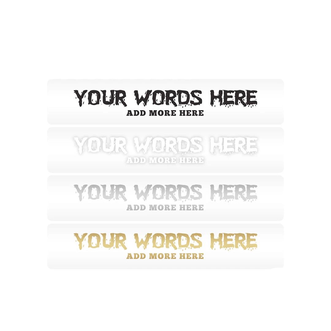 - Decals are approximately 1/2″ tall (max length approximately 3″, depending on amount of text entered)