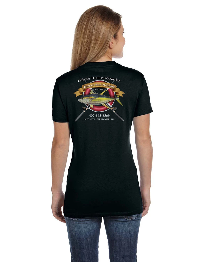 Printed on high-quality Hanes Ladies’ 4.5 oz., 100% Ringspun Cotton nano-T® V-Neck T-Shirt. Available in Pink or Black, sizes XS, S, M, L, XL and 2XL.