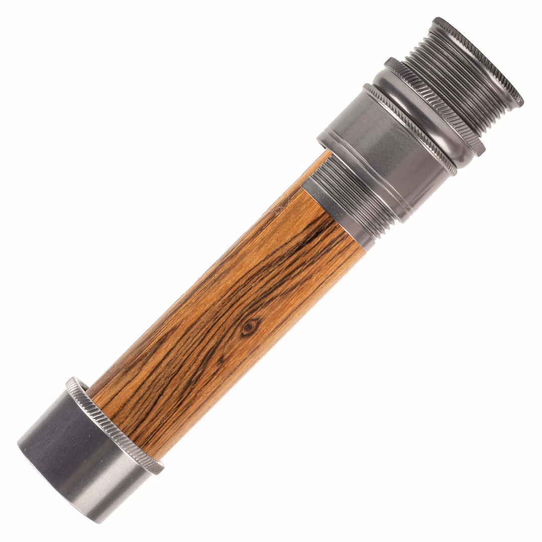 This reel seat is identical in features to the AUS except in a downlocking configuration. Fine thread, skeleton design with mortised spacer. Knurled nut, slide band, and fixed hood. Recommended for #3-7 line weight rods.