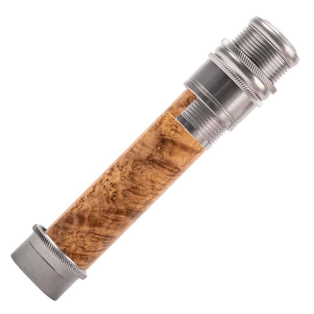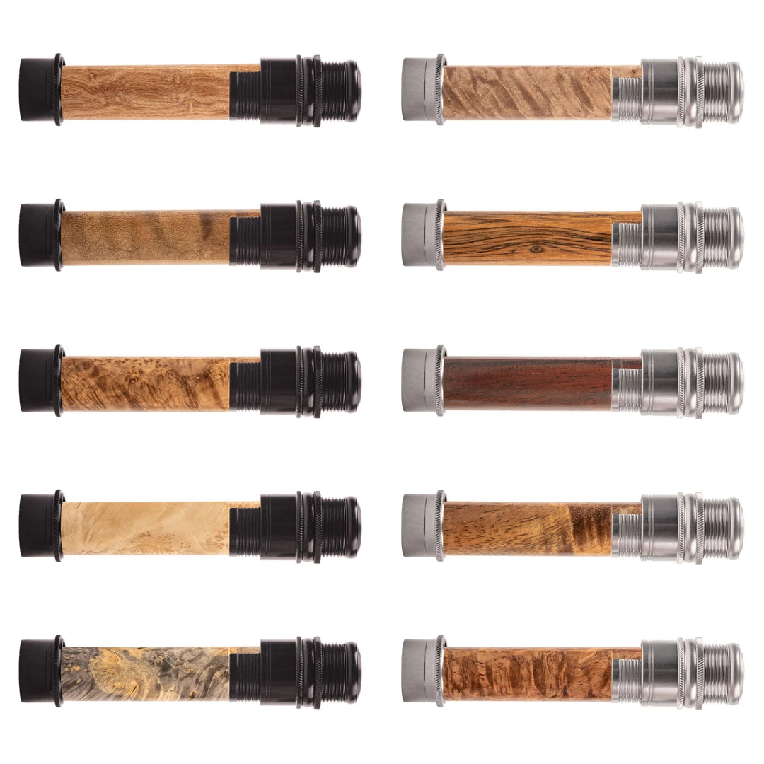 Fine thread, skeleton uplocking design with mortised spacer. Same dimensions and general features as the NSUS except in aluminum. Knurled nut, slide band, and fixed hood. Recommended for #3-7 line weight rods.