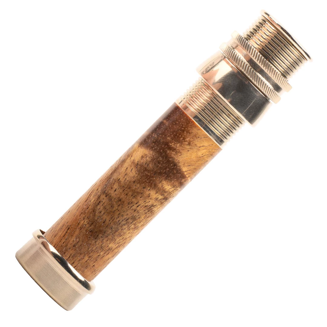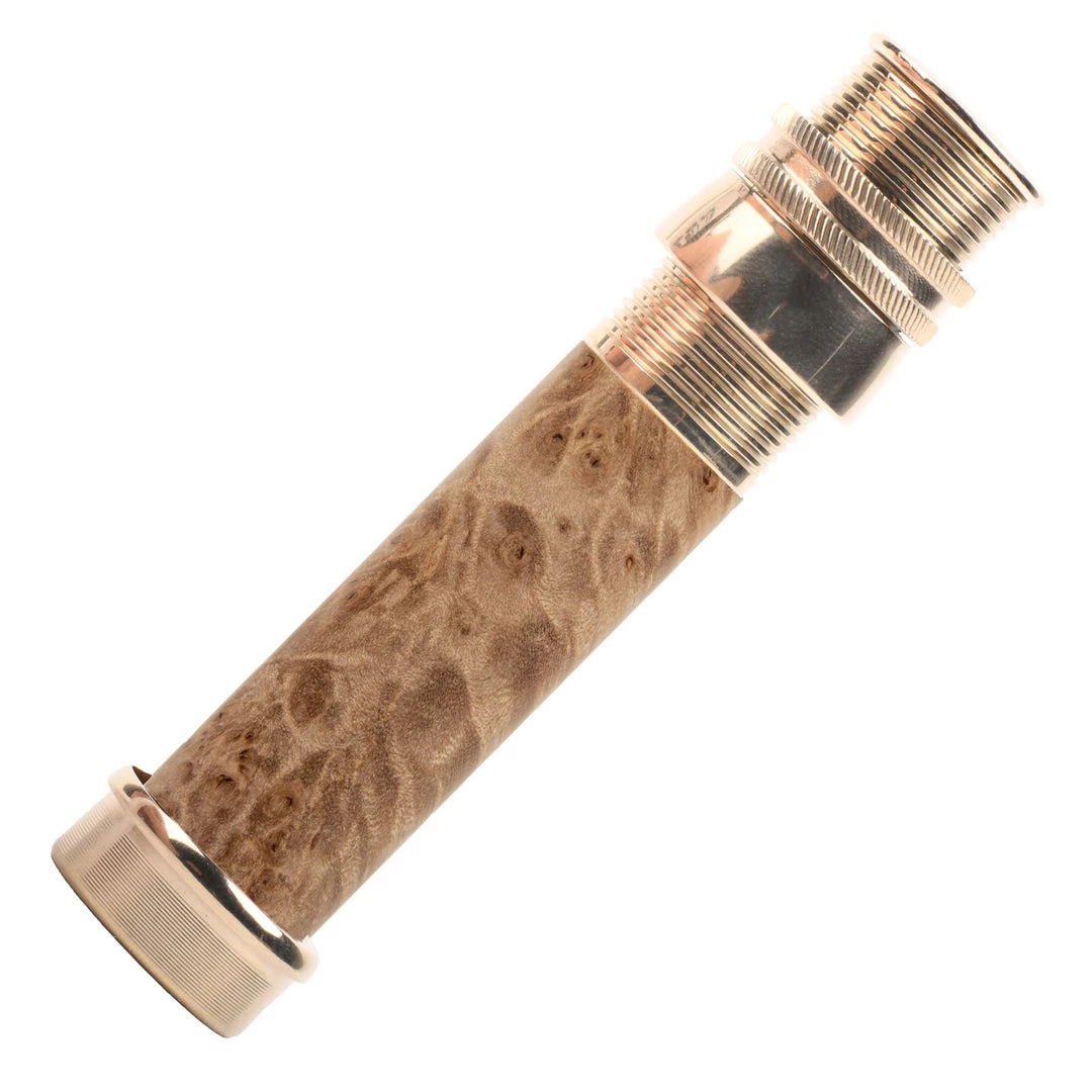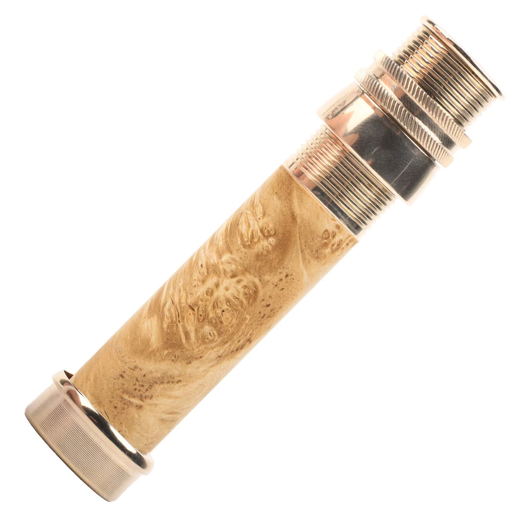 | Color | Birdseye Maple, Tiger/Fiddleback Maple, Box Elder Burl, CA Buckeye Burl, Stabilized Maple Burl, Bocote, Cocobolo, Curly Koa |